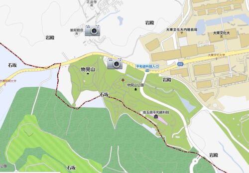 埼玉県の東松山市と鳩山町の境目にある【巖殿観音:いわどのかんのん】。 ここの大銀杏と、モミジの紅葉は実に見事なのです。 それを楽しみに立ち寄って見ました。 マークは、今回の写真の撮影場所です 午後から晴れたとは言え、至る所こんな感じの濃い霧が…