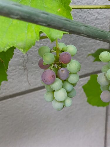 にほんブログ村 湿っぽい話は先の記事で終わりにしましょう!(^^) 暑い暑い夏が少しだけ落ち着いて、30℃有っても「涼しく」感じる身体に 庭のデラウェアの実に、色が付き始めました(^^) 試しに色づいた実を指で取って、口に入れてみたら・・・・ 「甘いです…