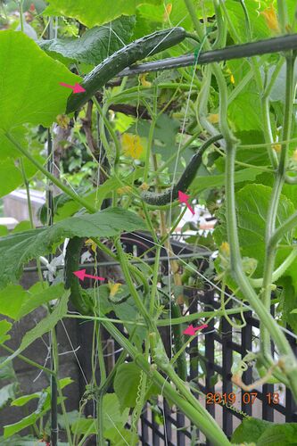№1045 毎日毎日本当に天気が悪く、気が滅入ります_| ̄|○ 出掛けて写真を撮ってくる気持ちも萎えてきます そんな中、庭の「子たち」はとても元気です! キュウリ(接ぎ木タイプ2本、後から買ってきた安い苗2本、そして友人から もらった細い苗2本) …