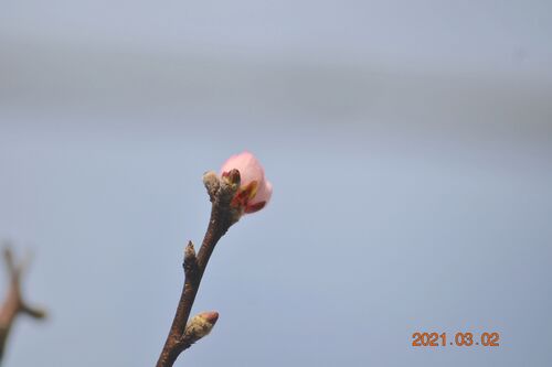 №1282 枝先を見たらもう濃いピンクの花びらが開きかけていました! 急いで去年の開花ブログを見たら・・去年よりも3日ほど早い様でした。 桜よりもひと足早く咲くアーモンドは、庭を明るくしてくれます(^o^) 他の枝の蕾も、もう準備オーケー!(^o^)vと…