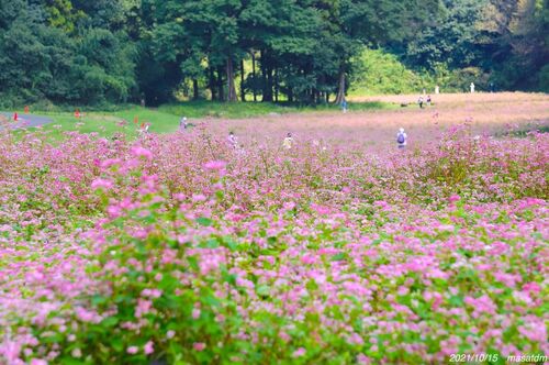 №1384 今の時期、武蔵丘陵森林公園では連作を避けつつつ広大な面積に「様々な植物」を 植えて下さったものが「目玉」になります。 今年は「赤そば」が一面に咲いています(^^)/ 見頃です! 行きたい場所が400mとか600mなどと、結構歩かなければな…
