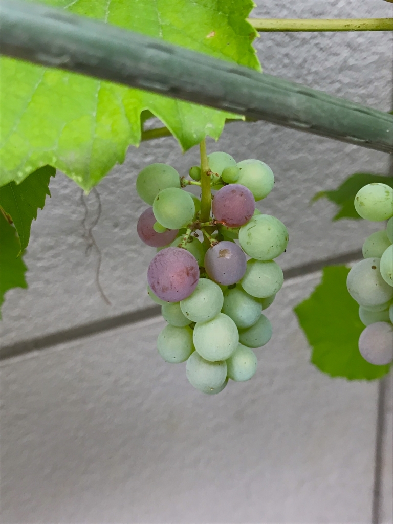 庭のデラウェアの実に、色が付き始めました(^^)🍇