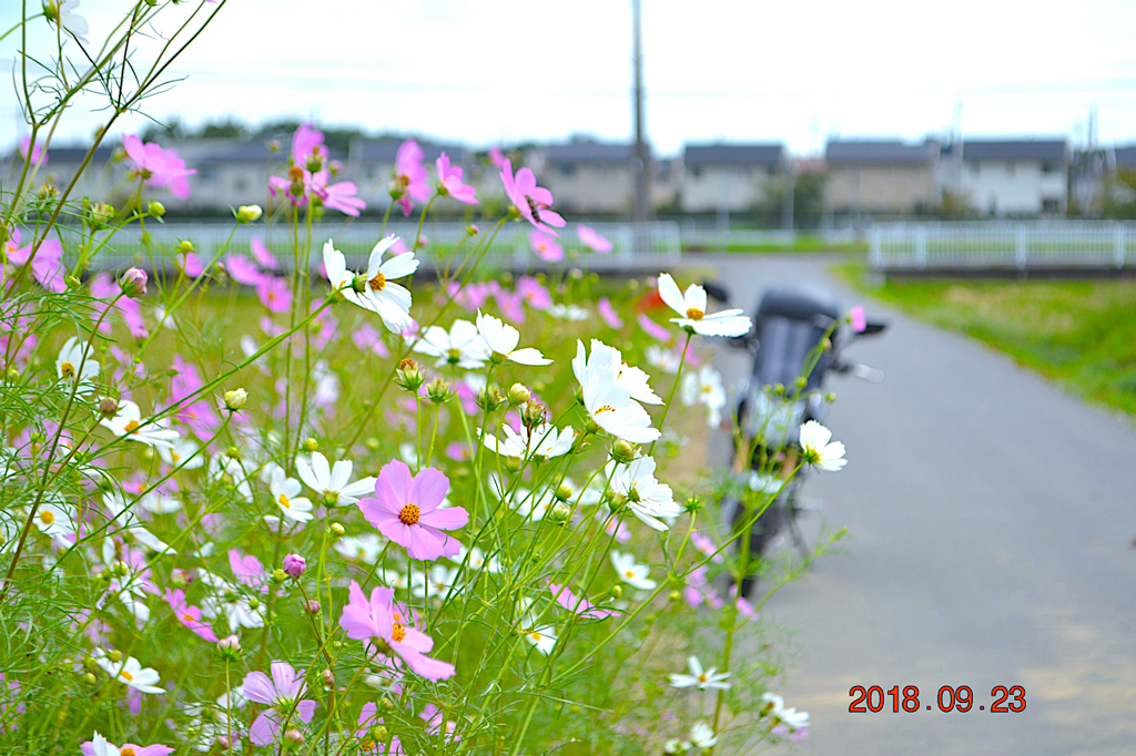 でも・・・帰宅途中に田圃道の脇で綺麗に咲く秋桜が目に入りましたので・・
