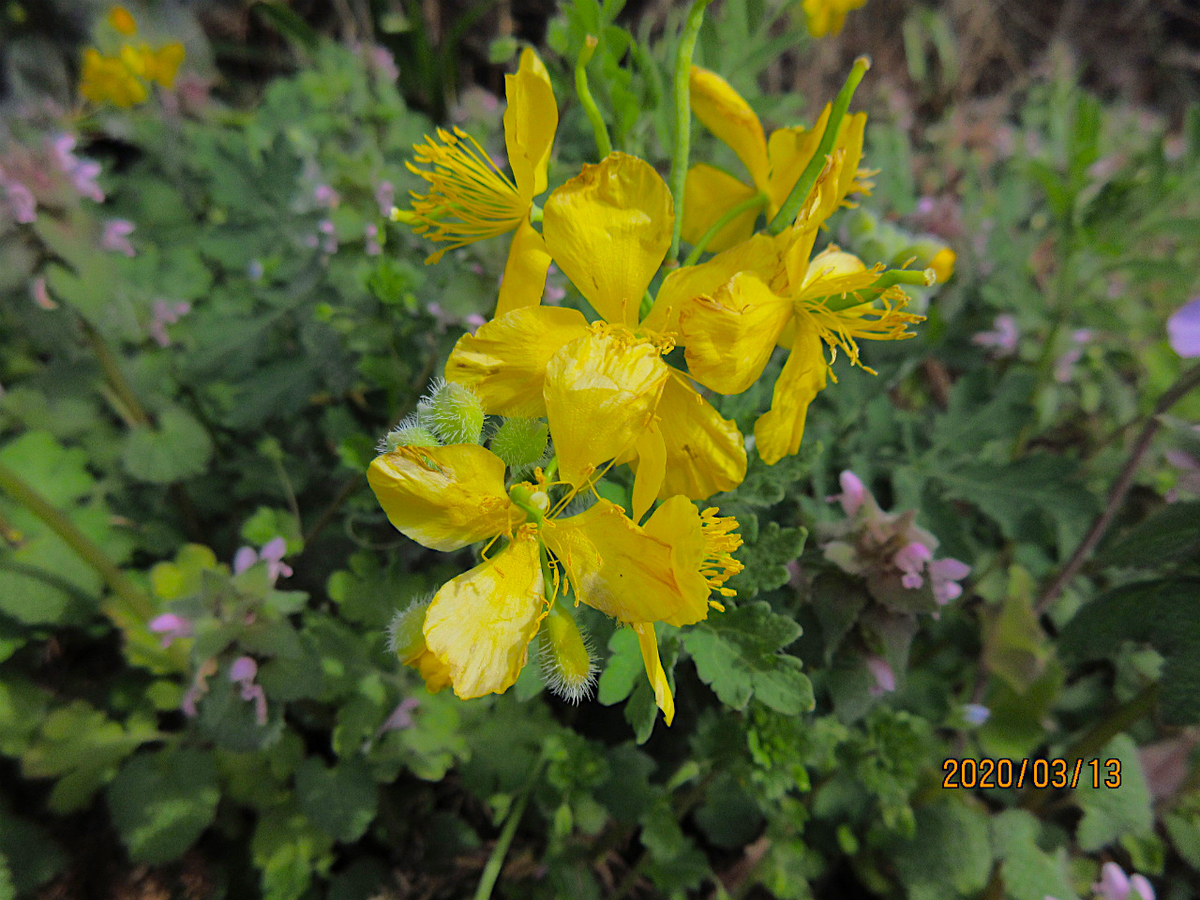 日当たりの良い入り口には、【クサノオウ】や【ムラサキハナナ】が輝くように