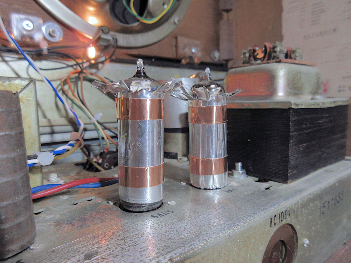真空管はガラスなので、あまり強く巻きつけることが難しく、かと言って離れていた