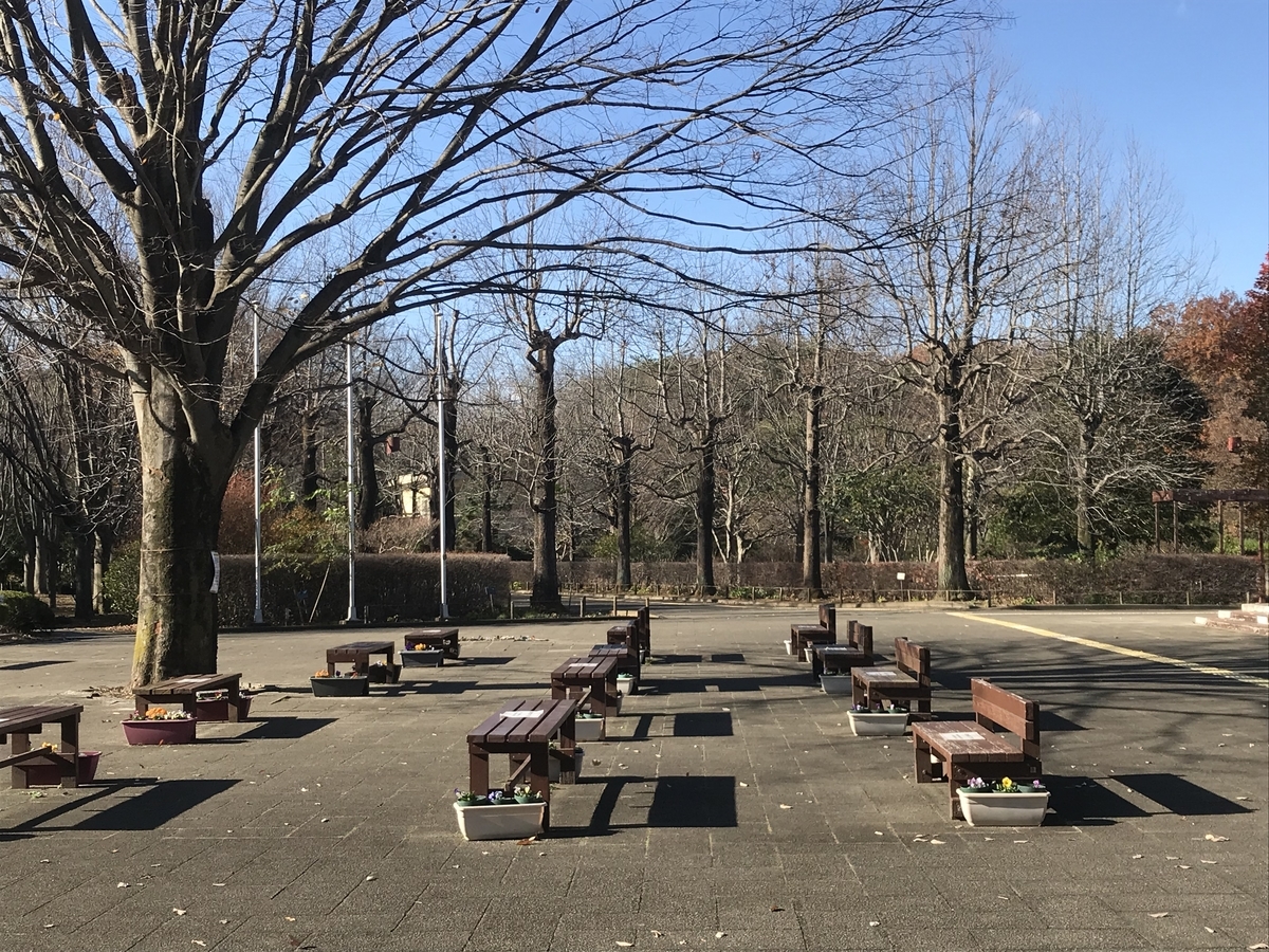 椅子の上の「密防止用張り紙」が全く必要のない北風吹き抜く景色です。