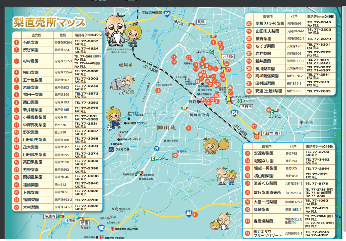 同県内の市町村は、関越道の「上里SA」で名を知られている「上里町」、「本庄市」、