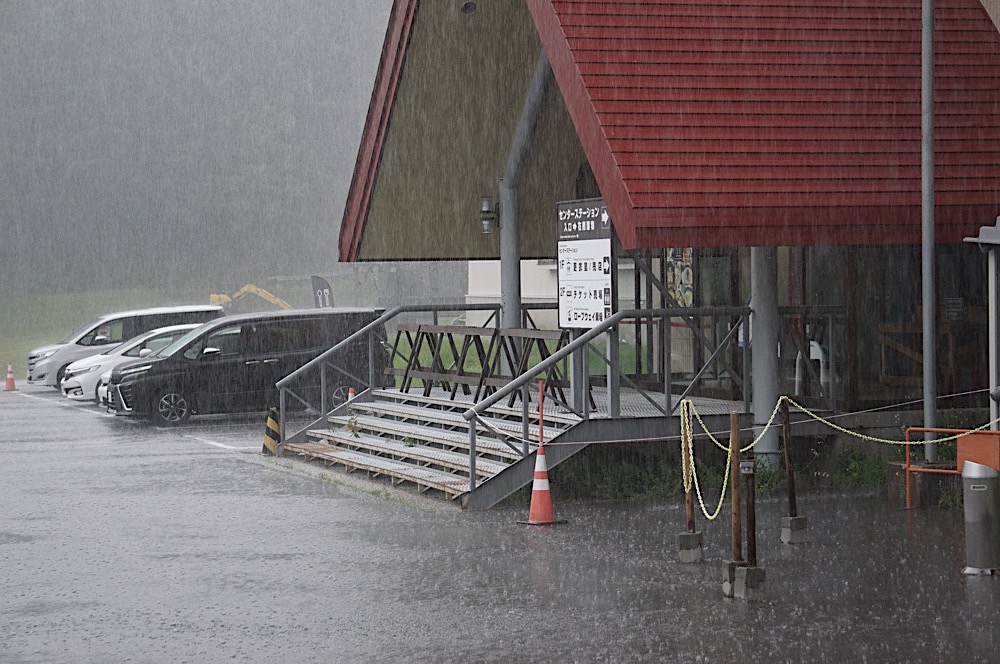まだ雨は強く降り雷もなっていましたので、下に降りてきた時点ではまだストップ!